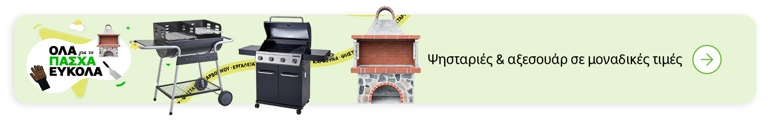 Στη LEROY MERLIN βρίσκεις τη μεγαλύτερη ποικιλία από ψησταριές και BBQ για τον κήπο ή τη βεράντα σου για να απολαμβάνεις τις νόστιμες δημιουργίες σου με τους φίλους και την οικογένειά σου! Με μια επίσκεψη σε ένα από τα καταστήματα LEROY MERLIN σε Αθήνα, Θεσσαλονίκη και Λάρισα, ή online στο eshop μας, θα βρεις δεκάδες είδη ψησταριών, όπως ψησταριές υγραερίου, ψησταριές κάρβουνου, ηλεκτρικές ψησταριές ή χτιστές, από τα μεγαλύτερα brands της αγοράς, όπως Weber, Campingaz, Tefal, Naterial και πολλά άλλα. Είτε θέλεις μια ψησταριά για γρήγορο και εύκολο ψήσιμο, είτε μια ψησταριά για να ψήνεις με την άνεση σου στο μπαλκόνι, είτε μια παραδοσιακή χτιστή ψησταριά για να δημιουργείς μοναδικές γεύσεις, στη LEROY MERLIN θα βρεις αυτό που ψάχνεις. Και φυσικά, η LEROY MERLIN δεν σε αφήνει μόνο σου! Στο eshop μας θα βρεις όλα τα απαραίτητα αξεσουάρ για να κάνεις το ψήσιμο παιχνιδάκι: σκεύη ψησίματος, εργαλεία, καύσιμα, και φυσικά χρήσιμες συμβουλές για εύκολο και νόστιμο ψήσιμο.