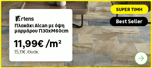 ΤΑ ΕΙΔΙΚΑ ΜΑΣ Πλακάκι μπάνιου Artens Lakos σε γκρι ματ απόχρωση με όψη μαρμάρου... ΠΡΟΣΦΟΡΑ -13% 14,99€ /m² 12,99€ /m² 18,89€ /συσκ. 16,37€ /συσκ. ΔΕΣ ΤΟ ΠΡΟΪΟΝ Μειωμένη τιμή
