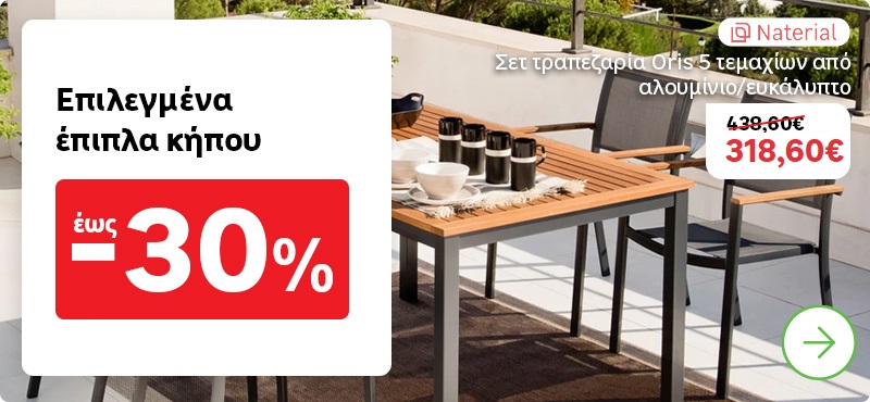 ΤΑ ΕΙΔΙΚΑ ΜΑΣ BEST SELLER Τραπέζι NATERIAL Oris fix από αλουμίνιο/ευκάλυπτο σε χρώμα γκρι... ΠΡΟΣΦΟΡΑ -25% 159€ 119€ ΔΕΣ ΤΟ ΠΡΟΪΟΝ Μειωμένη τιμή