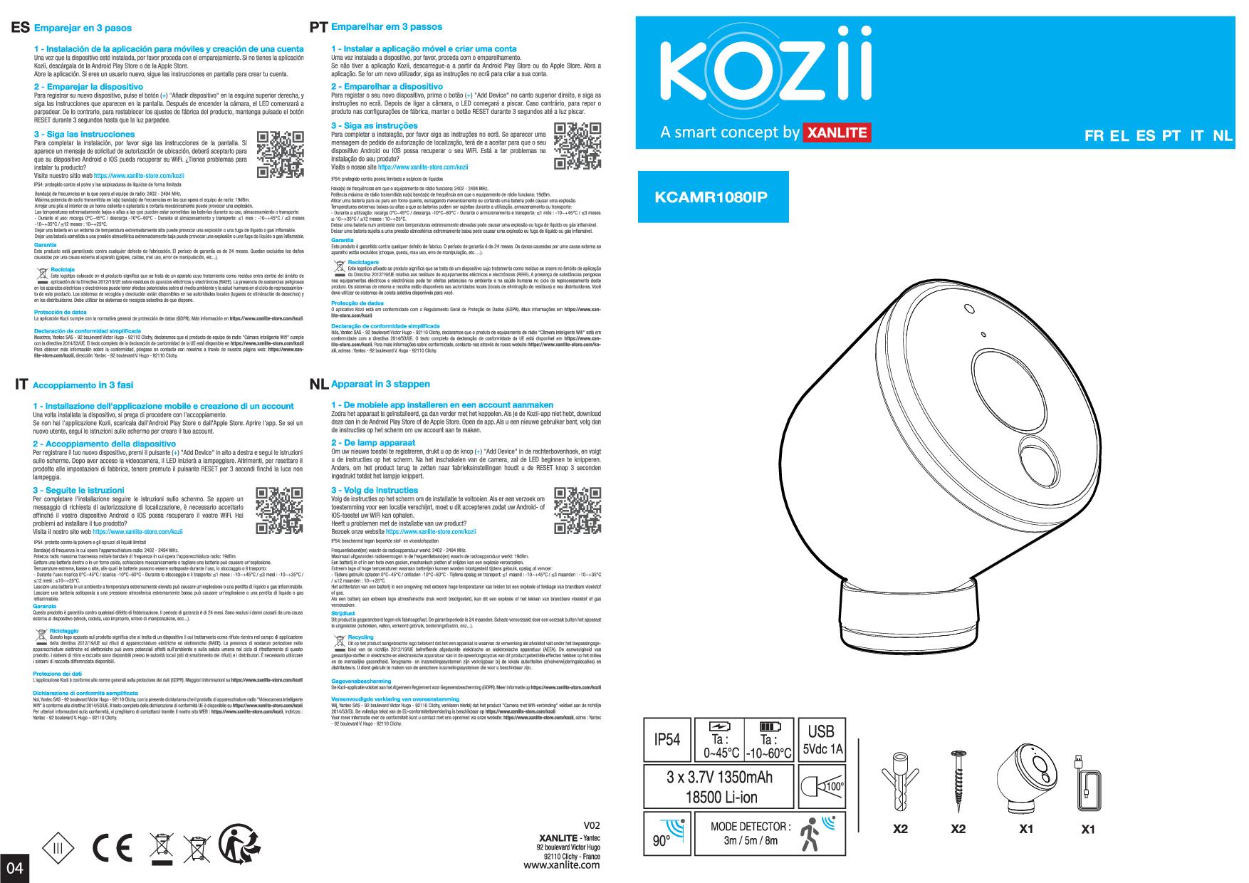 Η κάμερα ασφαλείας Kozii της Xanlite είναι ψηφιακή (IP), συνδέεται στο δίκτυο σας ασύρματα μέσω Wi-Fi και τοποθετείται σε επίπεδες επιφάνειες. Μπορείτε ακόμη μέσω εφαρμογής στο smartphone κινητό σας, να χειριστείτε την κάμερα και να παρακολουθήσετε live την περιοχή λήψης που επιθυμείτε. Τέλος, είναι εφοδιασμένη με φώτα led υπερύθρων έτσι ώστε να είναι δυνατή η καταγραφή της εικόνας σε απόλυτο σκοτάδι.