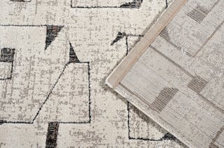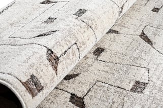 Χαλί μηχανής από την συλλογή Giza Cairo σε μπεζ χρώμα με καφέ λεπτομέρειες και μοντέρνο σχέδιο, που συνδυάζει αρμονικά την υψηλή αισθητική με την εξαιρετική ποιότητα κατασκευής. Η επιφάνειά του είναι ανάγλυφη. Η σειρά Giza Cairo είναι χαλιά μηχανής με συνδυασμό διαφορετικών πολυεστερικών νημάτων σύνθεσης multi shrink polyester και soft πολυπροπυλένιο που προσδίδουν μια πιο πολυτελή όψη. Χάρη στην ειδική επεξεργασία των νημάτων, τα χαλιά της σειράς παρουσιάζουν υψηλή αντοχή στην καθημερινή χρήση και εξαιρετική ανθεκτικότητα. Το χαλί έχει βάρος 2.300gsm και πυκνότητα 315.000 κόμπους/τ.μ. Το πέλος ύψους 11mm προσφέρει μία ευχάριστη αίσθηση στο πάτημα. Διαθέτει υφαντό υπόστρωμα από γιούτα που αυξάνει την αντοχή και τη διάρκεια ζωής του χαλιού. Αντιβακτηριδιακό, υποαλλεργικό και με αντιστατικά νήματα, επομένως δεν μαγνητίζονται χνούδια, μικροσωματίδια και σκόνη στην επιφάνειά τους. Τα νήματα και η διαδικασία παραγωγής των χαλιών είναι πιστοποιημένα με όλα τα διεθνή σήματα ποιότητας. Tο σκούπισμα με ηλεκτρική σκούπα είναι εύκολο. Ο καθαρισμός του χαλιού είναι εύκολος, καθώς είναι πλενόμενο σύμφωνα πάντα με τι