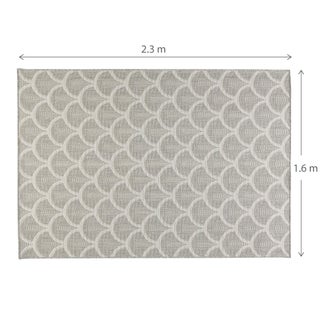 Χαλί εξωτερικού χώρου Delos. Ιδανικό για διακόσμηση και προστασία δαπέδων, τόσο σε εσωτερικούς όσο και σε εξωτερικούς χώρους. Με πυκνότητα 1000 g/m², αυτό το ορθογώνιο χαλί πλένεται στο πλυντήριο. Εύκολο καθάρισμα. Το 100% των υλικών που χρησιμοποιούνται στην παραγωγή του είναι ανακυκλωμένα. Διαθέτει επίσης την ετικέτα Oeko-Tex®, η οποία πιστοποιεί την απουσία επιβλαβών ουσιών. Διαστάσεις: 160 x 230 cm (πλάτος x μήκος).
