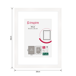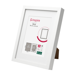 Κορνίζα Inspire της σειράς Milo ιδανική για φωτογραφία 18x24 cm ή φωτογραφία 13x18cm με το πασπαρτού, σε χρώμα λευκό και υλικό κατασκευής ξύλο. Μπορεί να τοποθετηθεί οριζόντια ή κάθετα στα έπιπλα σου. Διατίθεται σε διάφορα μεγέθη και χρώματα.