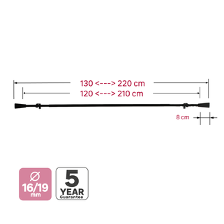 Σετ κουρτινόξυλο με σταθερό μήκος 120cm από μέταλλο σε μαύρο χρώμα. Η επέκτασή του φτάνει μέχρι τα 210cm. Τα κουρτινόξυλα μπορούν να αλλάξουν την αισθητική του χώρου και να αναδείξουν τις κουρτίνες με μοναδικό τρόπο. Επίλεξε κουρτινόξυλα ανάμεσα από μια μεγάλη ποικιλία και διαφορετικά στυλ και μεταμόρφωσε το σπίτι σου εύκολα και οικονομικά.