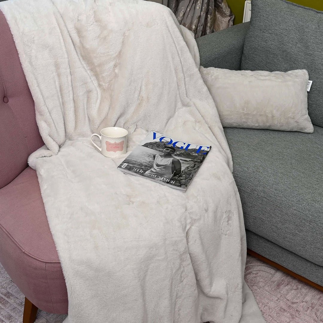 Γούνινο διακοσμητικό ριχτάρι Rabbit σε ιβουάρ χρώμα. Η γούνα είναι οικολογική από πολυεστέρα, που το καθιστά πολύ απαλό και ζεστό. Μπορείτε να το τοποθετήσετε σε πολυθρόνα ή σε καναπέ, ακόμα και να το χρησιμοποιήσετε σαν κουβέρτα για τον καναπέ σας. Είναι ιδανικό για τους χειμερινούς μήνες. Συνδυάστε το με τα υπόλοιπα είδη της ίδιας σειράς για ένα ολοκληρωμένο σετ.