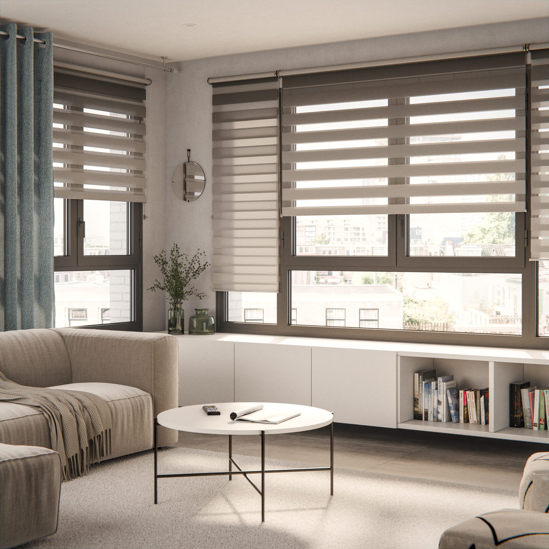 Ρολοκουρτίνα day & night εσωτερικού χώρου INSPIRE Bolero με ρίγες. Έχει χειροκίνητο μηχανισμό και καθαρίζεται εύκολα με βρεγμένο πανί. Οι ρολοκουρτίνες έχουν πολλές δυνατότητες: Μπορούν να περιορίσουν, να ρυθμίσουν και να μπλοκάρουν το φως που εισέρχεται στο χώρο, να απομονώσουν τη θερμότητα και να προστατέψουν την ιδιωτικότητα. Επίλεξε μέσα απο μια μεγάλη ποικιλία σε σχέδια και χρώματα την κατάλληλη ώστε να βρείς αυτη που ταιριάζει στο στυλ του χώρου σου και καλύπτει τις δικές σου ανάγκες.