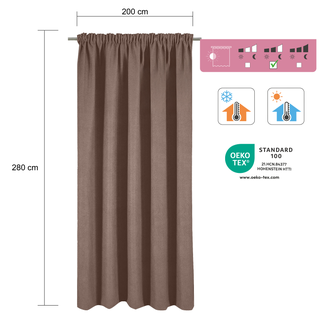 Μεταμορφώστε τον χώρο σας με τη θερμική κουρτίνα RAGNAR από την INSPIRE, έναν τέλειο συνδυασμό λειτουργικότητας και αισθητικής. Αυτή η θερμική κουρτίνα συσκότισης εγγυάται απόλυτο σκοτάδι για γαλήνιες νύχτες, ενώ διατηρεί τη βέλτιστη θερμοκρασία στην κρεβατοκάμαρά σας ή σε οποιοδήποτε άλλο δωμάτιο του σπιτιού σας. Το πυκνό του ύφασμα εξασφαλίζει ιδανική θερμοκρασία όλο το χρόνο, δημιουργώντας μια ζεστή και φιλόξενη ατμόσφαιρα. Χάρη στο επάνω φινίρισμά του μπορεί εύκολα να γλιστρήσει σε κουρτινόξυλο ή ράγα χρησιμοποιώντας αξεσουάρ που πωλούνται χωριστά. Μία κουρτίνα με δύο τρόπους κρέμασης, με κρίκους ή χωρίς. Είναι κατασκευασμένο από 97% πολυεστέρα και 3% νάιλον με ματ εμφάνιση. Εύκολη συντήρηση: Πλένεται στο πλυντήριο στους 30°. Αυτό το προϊόν είναι πιστοποιημένο STANDARD 100 από την ετικέτα Oeko-Tex®, που εγγυάται την απουσία επιβλαβών ουσιών σε ποσότητες που μπορεί να βλάψουν την υγεία. Περιλαμβάνεται μια θερμοκολλητική ταινία για να μπορείτε να προσαρμόσετε το ύψος ανάλογα με τις ανάγκες σας. Προσφέρει 5 χρόνια εγγύηση. Διαστάσεις: 200 x 280 cm (πλάτος x ύψος).