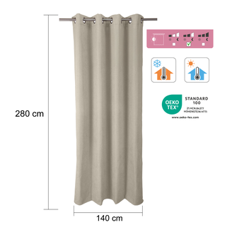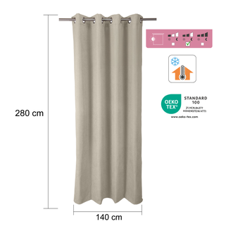 Μεταμορφώστε τον χώρο σας με τη θερμική κουρτίνα RAGNAR από την INSPIRE, έναν τέλειο συνδυασμό λειτουργικότητας και αισθητικής. Αυτή η θερμική κουρτίνα συσκότισης εγγυάται απόλυτο σκοτάδι για γαλήνιες νύχτες, ενώ διατηρεί τη βέλτιστη θερμοκρασία στην κρεβατοκάμαρά σας ή σε οποιοδήποτε άλλο δωμάτιο του σπιτιού σας. Αυτή η κουρτίνα 2 σε 1 προσφέρει απόλυτο σκοτάδι, διατηρώντας παράλληλα τη θερμότητα χάρη στο υπόστρωμά της από φλις. Το βελούδινο εφέ και το μπεζ χρώμα της είναι ιδανικά για μια λαμπερή διακόσμηση. Μία κουρτίνα με δύο τρόπους κρέμασης, με κρίκους ή χωρίς. Είναι κατασκευασμένο από 97% πολυεστέρα και 3% νάιλον σε γκρι Paris με ματ εμφάνιση. Εύκολη συντήρηση: Πλένεται στο πλυντήριο στους 30°. Αυτό το προϊόν είναι πιστοποιημένο STANDARD 100 από την ετικέτα Oeko-Tex®, που εγγυάται την απουσία επιβλαβών ουσιών σε ποσότητες που μπορεί να βλάψουν την υγεία. Προσφέρει 5 χρόνια εγγύηση. Διαστάσεις: 140 x 280 cm (πλάτος x ύψος)