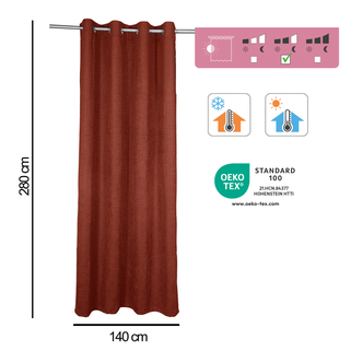 Μεταμορφώστε τον χώρο σας με τη θερμική κουρτίνα RAGNAR από την INSPIRE, έναν τέλειο συνδυασμό λειτουργικότητας και αισθητικής. Αυτή η θερμική κουρτίνα συσκότισης εγγυάται απόλυτο σκοτάδι για γαλήνιες νύχτες, ενώ διατηρεί τη βέλτιστη θερμοκρασία στην κρεβατοκάμαρά σας ή σε οποιοδήποτε άλλο δωμάτιο του σπιτιού σας. Αυτή η κουρτίνα 2 σε 1 προσφέρει απόλυτο σκοτάδι, διατηρώντας παράλληλα τη θερμότητα χάρη στο υπόστρωμά της από φλις. Το βελούδινο εφέ και το κοκτέιλ κόκκινο χρώμα της είναι ιδανικά για μια λαμπερή διακόσμηση. Μία κουρτίνα με δύο τρόπους κρέμασης, με κρίκους ή χωρίς. Είναι κατασκευασμένο από 97% πολυεστέρα και 3% νάιλον σε γκρι Paris με ματ εμφάνιση. Εύκολη συντήρηση: Πλένεται στο πλυντήριο στους 30°. Αυτό το προϊόν είναι πιστοποιημένο STANDARD 100 από την ετικέτα Oeko-Tex®, που εγγυάται την απουσία επιβλαβών ουσιών σε ποσότητες που μπορεί να βλάψουν την υγεία. Προσφέρει 5 χρόνια εγγύηση. Διαστάσεις: 140 x 280 cm (πλάτος x ύψος)