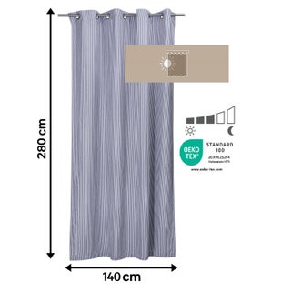 Η κουρτίνα BENISA από την INSPIRE είναι ιδανική για τη διακόσμηση εσωτερικών χώρων και για να διακοσμήσετε ένα παράθυρο ή μια μπαλκονόπορτα χάρη στις διαστάσεις της 140x280 εκ. Αυτή η κουρτίνα επιτρέπει στο φως να εισέλθει στο σπίτι σας, προστατεύοντας παράλληλα την ιδιωτικότητά σας. Οι ρίγες και το μπλε-γκρι χρώμα της συμπληρώνουν τέλεια μια διακόσμηση σε στιλ country. Η κουρτίνα BENISA που φιλτράρει το φως είναι κατασκευασμένη από 80% βαμβάκι και 20% πολυεστέρα. Είναι εύκολη στη φροντίδα: πλένεται στο πλυντήριο στους 30°C. Προστατεύοντας εσάς και την οικογένειά σας: Αυτά τα προϊόντα είναι πιστοποιημένα σύμφωνα με την ετικέτα OEKO-TEX® STANDARD 100, η οποία εγγυάται την απουσία επιβλαβών ουσιών σε ποσότητες που θα μπορούσαν να είναι επιβλαβείς για την υγεία.