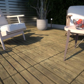Το επεξεργασμένο πλακάκι πάνελ από πεύκο κατηγορίας III Α (30x30 cm) έχει σχεδιαστεί με αυλακωτές ράγες πάχους 24 mm, προσφέροντας αισθητική και λειτουργικότητα. Εξασφαλίζει καλή σταθερότητα. Η δομή του αποτελείται από μια βάση που αποτελείται από 2 ράγες και μια κορυφή που αποτελείται από 5 πήχεις, παρέχοντας μια στιβαρή συναρμολόγηση μέσω συρραφής. Ιδανικό για εξωτερικές εφαρμογές, αυτό το πλακάκι deck προσθέτει μια φυσική πινελιά ενώ αντέχει στα εξωτερικά στοιχεία.