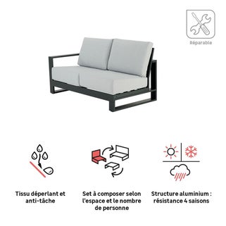 Απολαύστε ένα απεριτίφ με φίλους καθισμένοι άνετα στον καναπέ Athena. Ένας μοντέρνος και άνετος καναπές για τα ζεστά καλοκαιρινά σας βράδια. Σχεδιασμένος για 2 άτομα, ο καναπές Athena συνδυάζει άνεση και κομψότητα για να αναβαθμίσει τη βεράντα σας. Τα μεγάλα και χοντρά μαξιλάρια του θα σας προσφέρουν ιδανικά καθίσματα για τα καλοκαιρινά σας βράδια και θα δώσουν ένα χαλαρωτικό ύφος στους εξωτερικούς σας χώρους. Με σκελετό αλουμινίου και αφαιρούμενα υδροαπωθητικά μαξιλάρια, ο καναπές είναι συνώνυμος με την αντοχή και τη στιβαρότητα για να σας συνοδεύει στο χρόνο. Κατάλληλος για επαγγελματική χρήση, μπορεί επίσης να χρησιμοποιηθεί σε βεράντες ξενοδοχείων ή μπαρ. Με κατασκευή από χοντρό αλουμίνιο, οι γραμμές της σειράς Athena είναι ευθείες και εκλεπτυσμένες. Αυτή η διθέσια έκδοση με ανθρακί σκελετό και γκρι μαξιλάρια θα δώσει μια μοντέρνα και κομψή εμφάνιση στους εξωτερικούς σας χώρους. Ολοκληρώνεται με τα τραπεζάκια σαλονιού και άλλες πολυθρόνες της σειράς για να αυξήσετε τον αριθμό των καθισμάτων και να προσαρμόσετε τη διαμόρφωση ανάλογα με τους καλεσμένους σας. Εύκολη φροντίδα.