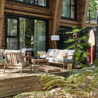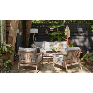 Σετ επίπλων Naterial Atlas από μασίφ ξύλο ακακίας, ιδανικό για 5 άτομα, σε nature στυλ. Αποτελείται από 1 καναπέ, 2 πολυθρόνες και 1 τραπεζάκι. Διαθέτει επίσης 10 μαξιλάρια με αποσπώμενα καλύμματα από ανοιχτό γκρι πολυεστέρα. Αυτό το σετ έχει την πιστοποίηση UNI EN 581 για έπιπλα εξωτερικού χώρου. Αυτό σημαίνει ότι όλα τα εξαρτήματά του πληρούν τις γενικές απαιτήσεις ασφάλειας για οικιακή, δημόσια χρήση ή χρήση σε κάμπινγκ. Επιπλέον έχει 5 χρόνια εγγύηση. Με πιστοποίηση FSC η οποία εγγυάται ότι το ξύλο προέρχεται από δάση με βιώσιμη διαχείριση που σέβονται το περιβάλλον. Διαστάσεις κάθε πολυθρόνας: 72,5 x 80 x 73,6 cm. Καναπές: 73,6 x 80 x 189 cm