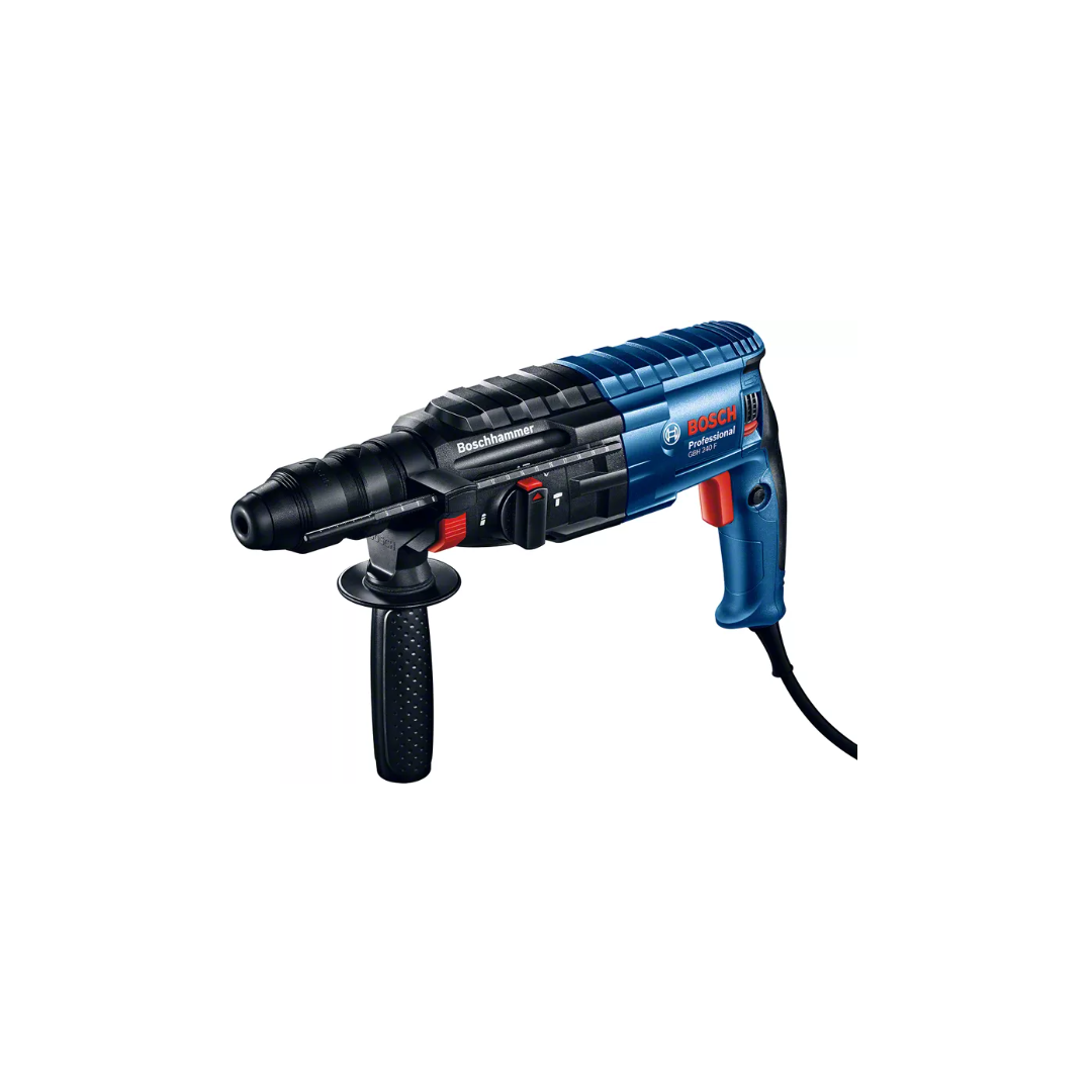 Το BOSCH Professional GBH 240 F είναι ένα πιστολέτο ρεύματος 790W, σχεδιασμένο για επαγγελματίες που απαιτούν δύναμη, αξιοπιστία και μεγάλη αντοχή. Με μηχανισμό κρουστικού δράσης υψηλής απόδοσης, προσφέρει ταχύ και αποτελεσματικό τρύπημα σε σκυρόδεμα, πέτρα και σκληρά δομικά υλικά.Διαθέτει αφαιρούμενο τσοκ (F) για εύκολη αλλαγή μεταξύ SDS-plus και κλασικού τσοκ, προσφέροντας μεγαλύτερη ευελιξία στις εφαρμογές. Η εργονομική λαβή και η στιβαρή κατασκευή του εξασφαλίζουν άνετη και σταθερή χρήση ακόμη και σε παρατεταμένη εργασία.Ιδανικό για τρύπημα, κρουστικό τρύπημα και ελαφριές εργασίες καλεμίσματος, το GBH 240 F αποτελεί μια κορυφαία επιλογή στην κατηγορία του, συνδυάζοντας υψηλή απόδοση και αξιοπιστία Bosch Professional