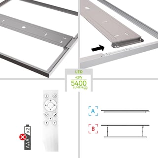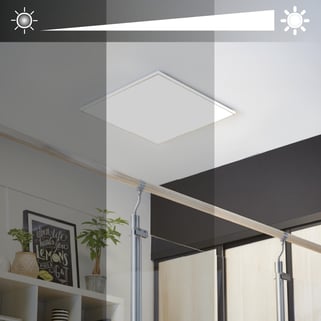 Τετράγωνο χωνευτό πάνελ με ενσωματωμένο LED, κατασκευασμένο από αλουμίνιο λευκό. Αυτό το ενσωματωμένο πάνελ LED της Inpsire, με πλαίσιο αλουμινίου είναι εξαιρετικά λεπτό, με διαστάσεις 59,5 x 59,5 cm, και παρέχει άφθονο φυσικό φως. Προσαρμόζεται στις ανάγκες σας ρυθμίζοντας τη φωτεινότητα και τη θερμοκρασία χρώματος χρησιμοποιώντας το παρεχόμενο τηλεχειριστήριο: επιλέξτε ανάμεσα σε λευκό φως 4000 Kelvin για μαγείρεμα ή εργασία ή σε θερμό φως 2700 Kelvin για μια ζεστή και χαλαρωτική ατμόσφαιρα, σε πλήρη ένταση ή με απαλό, διάχυτο φως. Η επιλογή είναι δική σας! Η εγκατάσταση είναι απλή: απλώς τοποθετήστε την πλάκα στήριξης και σύρετε το πάνελ στη θέση του. Είναι τόσο εύκολο! Με τον εξαιρετικά λεπτό μετασχηματιστή που βρίσκεται πάνω από το πάνελ, μπορείτε να επιλέξετε ανάμεσα σε δύο επιλογές στήριξης: τοποθέτηση στην οροφή ή ανάρτηση (τα αξεσουάρ πωλούνται ξεχωριστά). Το πολύ λεπτό πλαίσιο αλουμινίου προσθέτει μια πινελιά μοντέρνας κομψότητας στο δωμάτιό σας. Η φωτιζόμενη περιοχή είναι περίπου 13 έως 14 m².