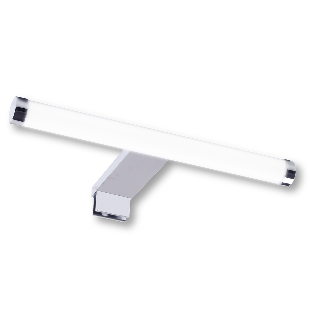 Αυτό το φωτιστικό μπάνιου LED χρωμίου 30cm. είναι κατάλληλο για τοποθέτηση πάνω από τον νιπτήρα του μπάνιου σας χάρη στην βαθμολογία IP44. Επωφεληθείτε από τις τρεις επιλογές τοποθέτησης για να το εγκαταστήσετε όπως επιθυμείτε: όρθιο, πάνω ή πίσω από τον καθρέπτη. Αυτή η ευελιξία επιτρέπει στο φωτιστικό να προσαρμόζεται τέλεια στη διαρρύθμιση του μπάνιου σας. Εξοπλισμένο με ενσωματωμένα LED, αυτό το επιτοίχιο φωτιστικό παρέχει ένα άνετο λευκό φως 4000 Kelvin.