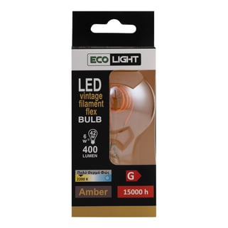 Διακοσμητική λάμπα led Ecolight σε μελί φινίρισμα, διαμέτρου 6cm, με σπείρωμα Ε27. Αυτός ο λαμπτήρας έχει θερμό λευκό χρώμα, ισχύ 420 Lumen και χαμηλή κατανάλωση μόνο 6 Watt ενέργειας. Εκτός από λειτουργική, η λάμπα αυτή της Ecolight φέρνει και μια διακοσμητική πινελιά στο χώρο. Το διαφανές μελί γυαλί του ωθεί τα όρια της αντίληψης, δημιουργώντας μια μαγική και αιθέρια ατμόσφαιρα, ενώ προσφέρει ένα μαγευτικό παιχνίδι φωτός όταν είναι αναμμένο. Έχει ωφέλιμη διάρκεια ζωής 15000 και σημαντική εξοικονόμηση ενέργειας.