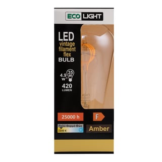 Διακοσμητική λάμπα led Ecolight σε μελί φινίρισμα, διαμέτρου 6,4cm, με σπείρωμα Ε27. Αυτός ο λαμπτήρας έχει θερμό λευκό χρώμα, ισχύ 420 Lumen και χαμηλή κατανάλωση μόνο 4,9 Watt ενέργειας. Εκτός από λειτουργική, η λάμπα αυτή της Ecolight φέρνει και μια διακοσμητική πινελιά στο χώρο. Το διαφανές μελί γυαλί του ωθεί τα όρια της αντίληψης, δημιουργώντας μια μαγική και αιθέρια ατμόσφαιρα, ενώ προσφέρει ένα μαγευτικό παιχνίδι φωτός όταν είναι αναμμένο. Έχει ωφέλιμη διάρκεια ζωής 25000 και σημαντική εξοικονόμηση ενέργειας.