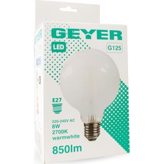 Λάμπα led GEYER E27 στρογγυλή milky (matt), διαμέτρου 12,5cm, κατανάλωσης 8W (ισοδύναμη με 70W), με απόδοση φωτός 950 Lumen, θερμό λευκό φως (2700Κ) και γωνία φωτισμού 320°. Με διάρκεια ζωής έως και 15000 ώρες, μπορείτε να μειώσετε την ταλαιπωρία της συχνής αντικατάστασης των λαμπτήρων και να απολαύσετε μια ιδανική λύση φωτισμού για περισσότερα χρόνια. Λάμπες LED νέας τεχνολογίας, τόσο για οικιακή όσο και για επαγγελματική χρήση, σε μεγάλη ποικιλία για κάθε ανάγκη. Μεγάλη διάρκεια ζωής και εξοικονόμηση ενέργειας.