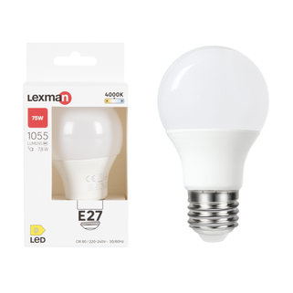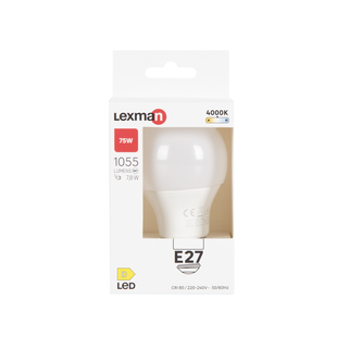 Σετ λάμπες Led LEXMAN, τυπικού μεγέθους (διάμετρος 60 mm) με σπείρωμα E27. Αυτός ο λαμπτήρας έχει απόδοση ουδέτερου λευκού χρώματος (4000K) με ισχύ 1055 Lumen, ίση με 75 Watt ενέργειας, αλλά καταναλώνει μόνο 7,8 Watt. Αυτό το προϊόν είναι ενεργειακής κλάσης D και συνοδεύεται από 5 χρόνια εγγύηση. Έχει ωφέλιμη διάρκεια ζωής 25.000 ώρες, μεγάλη διάρκεια ζωής και σημαντική εξοικονόμηση ενέργειας.