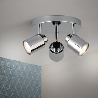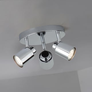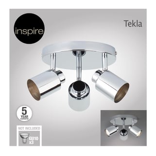Αυτό το απλό αλλά κομψό φωτιστικό οροφής Inspire TEKLA 3 κεφαλών, σε χρώμιο, ταιριάζει απόλυτα τόσο σε κλασικούς όσο και σε σύγχρονους εσωτερικούς χώρους. Είναι ιδανικό για τον φωτισμό ενός σαλονιού, κουζίνας ή εισόδου. Εξαιρετικά λειτουργικό, η κεφαλή του περιστρέφεται προς όλες τις κατευθύνσεις για να κατευθύνει το φως όπως απαιτείται. Εξοπλίστε το προβολέα σας με λαμπτήρες LED Lexman GU10 για έντονο φωτισμό, εξοικονομώντας παράλληλα ενέργεια. Οι λαμπτήρες πωλούνται ξεχωριστά. Αυτό το προϊόν Inspire συνοδεύεται από 5ετή εγγύηση. Έχει διάμετρο 18 cm και διατίθεται επίσης ως διακοσμητικοί προβολείς σε διάφορα χρώματα.