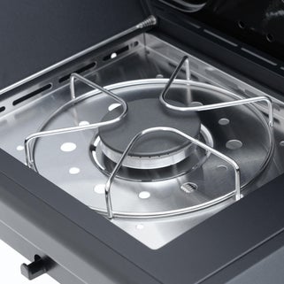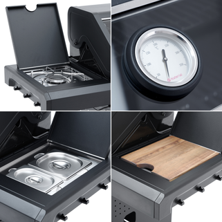 Η ψησταριά αερίου NATERIAL HUDSON II 3B+1 συνδυάζει κομψότητα και μοντέρνο σχεδιασμό. Σχεδιασμένη για τους λάτρεις της σχάρας, διαθέτει τρεις κύριους καυστήρες και έναν πλευρικό καυστήρα από ανοξείδωτο ατσάλι, εξασφαλίζοντας βέλτιστη απόδοση θερμότητας. Το καπάκι με γυάλινο παράθυρο σας επιτρέπει να παρακολουθείτε τη διαδικασία μαγειρέματος χωρίς να χάνετε θερμότητα ή γεύση. Αυτή η ψησταριά προσφέρει μια εξατομικευμένη εμπειρία μαγειρέματος χάρη στο σύστημα πολλαπλού μαγειρέματος. Η αρθρωτή κεντρική πλάκα επιτρέπει ποικιλία στις γαστρονομικές σας δημιουργίες (ψήσιμο στη σχάρα, plancha, wok ή πίτσα) ανάλογα με τις προτιμήσεις σας. Οι εμαγιέ σχάρες και η πλάκα από χυτοσίδηρο εγγυώνται εξαιρετική κατανομή θερμότητας για σταθερά επιτυχημένα αποτελέσματα, ιδανικά για 6 έως 10 άτομα. Περιλαμβάνεται κάλυμμα. Το μοντέλο HUDSON II είναι κατασκευασμένο για να διαρκεί. Χάρη στην επίστρωση σμάλτου, το χυτοσίδηρο καθαρίζεται εύκολα με σαπουνόνερο και βούρτσα. Η τακτική συντήρηση των επιφανειών διασφαλίζει μακροζωία και απόδοση της συσκευής σας. Καλύπτεται από 8ετή εγγύηση, προσφέροντάς σας μέγιστη ηρε