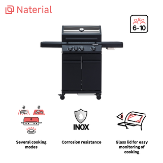 Ψησταριά υγραερίου NATERIAL Hudson II με 3+1 καυστήρες σε μαύρο χρώμα
