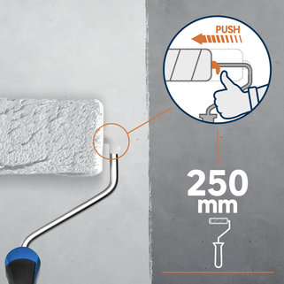 Ειδικό ανταλλακτικό για ρολό 25 cm, σχεδιασμένο για γρήγορο βάψιμο μεγάλων επιφανειών. Είναι ιδανικό για όλους τους τύπους δαπέδων, τόσο σε εσωτερικούς όσο και σε εξωτερικούς χώρους, καθώς και για όλους τους τύπους χρωμάτων: ακρυλικό ή αλκυδικό. Η μεγάλη του διάμετρος επιτρέπει να εργάζεστε πιο γρήγορα με λιγότερα πιτσιλίσματα χρώματος. Αυτό το ανταλλακτικό διαθέτει πλαστική άκρη που διευκολύνει την αφαίρεση του κυλίνδρου από τη λαβή με ένα μόνο πάτημα. Οι ίνες πολυαμιδίου πάχους 10 mm εξασφαλίζουν ένα λείο φινίρισμα χωρίς ραβδώσεις. Το πολυαμίδιο παρέχει καλύτερη πρόσφυση στο χρώμα και αποτρέπει το στάξιμο στην επιφάνεια. Σχεδιασμένο για να αποφεύγεται η απώλεια ινών.