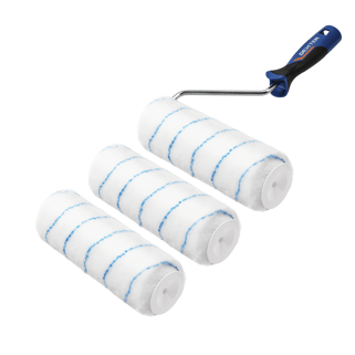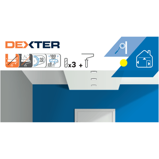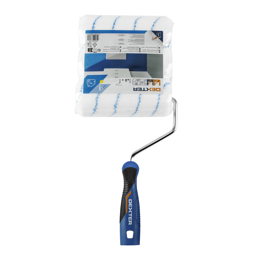 Πρακτικό σετ βαφής DEXTER με ρολό 180mm και τρία ανταλλακτικά για λείες επιφάνειες. Ιδανικό για τοίχους, ταβάνια και DIY εφαρμογές, προσφέροντας ομοιόμορφη κάλυψη και άνετη χρήση.