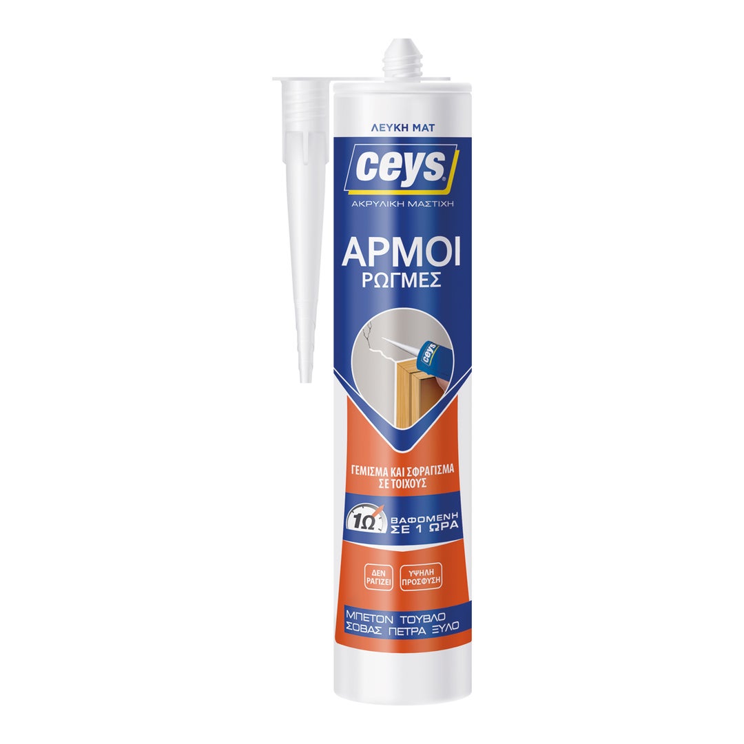 Ακρυλική μαστίχη CEYS 280ml σε άσπρο χρώμα, βάφεται και είναι ιδανική για γεμίσματα σε τοίχους και ταβάνια.
