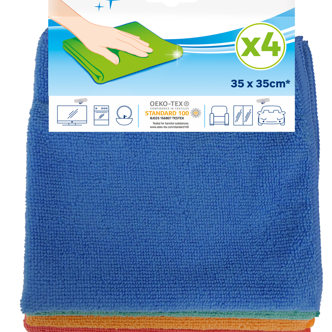 Σετ 4 μικροϊνών ιδανικό για τον καθαρισμό όλων των επιφανειών στο σπίτι. Η ετικέτα OEKO-TEX® εγγυάται την απουσία επιβλαβών ουσιών σε ποσότητες που θα μπορούσαν να βλάψουν την υγεία