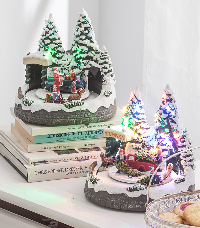 Μην ξεχνάς τη διακόσμηση στην κουζίνα, καθώς εκεί περνάς μεγάλο μέρος της ημέρας! Τοποθέτησε σε ένα ξύλινο κοπιδάκι ή δίσκο μικρές ρητινένιες φιγούρες, δεντράκια, μίνι σπίτια και ψεύτικο χιόνι. Αν θέλεις, πρόσθεσε και ένα κερί με άρωμα κανέλας ή πορτοκαλιού για να απογειώσεις την αίσθηση των γιορτών ακόμα και όταν ετοιμάζεις τον καφέ σου.