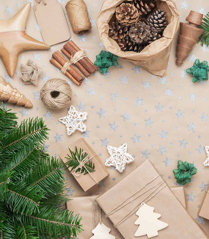 | Στολίδια από φυσικά υλικά | Γήινο, διαχρονικό & eco-friendly | Κώνοι, λινάτσα, κανέλα, αποξηραμένα πορτοκάλια, κλαδάκια έλατου |