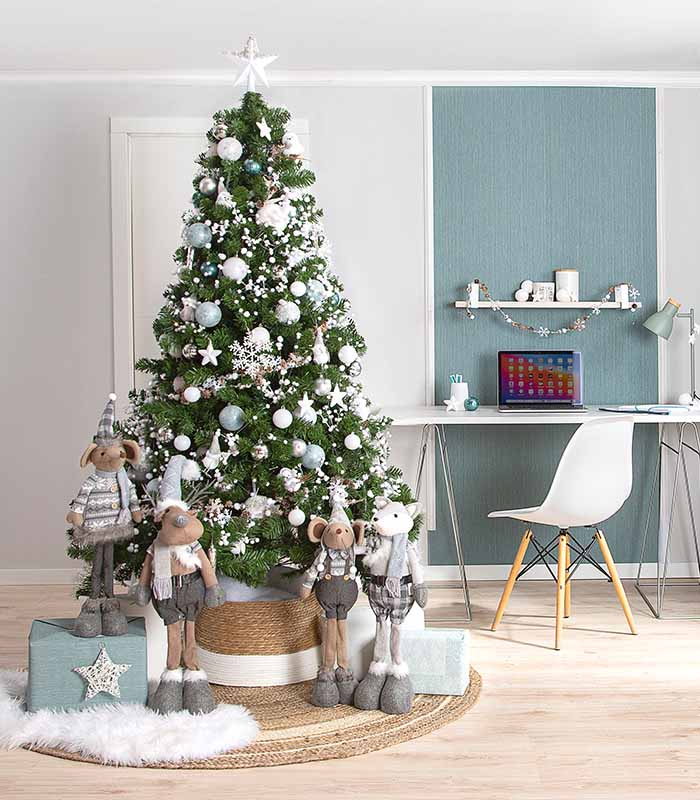 2. Λευκό δέντρο: Δίνει φως και minimal χαρακτήρα. Αναδεικνύεται με ψυχρές παλέτες όπως μπλε–ασημί ή ασπρόμαυρο, αλλά και με pastel για chic και κομψό αποτέλεσμα.