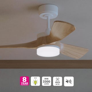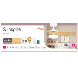 Ανεμιστήρας οροφής INSPIRE CHRIS S, διαμέτρου 91cm, με ενσωματωμένο φωτιστικό, σε λευκό χρώμα. Μοντέρνο design και αθόρυβη λειτουργία για μικρούς χώρους.