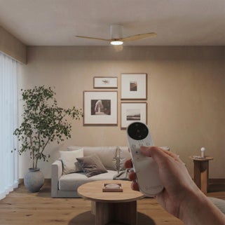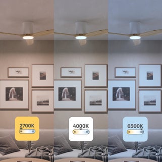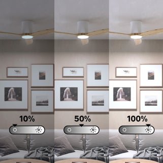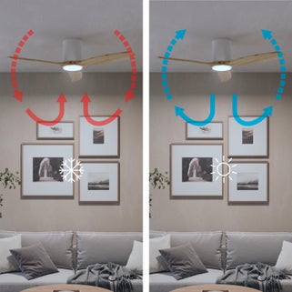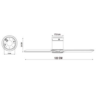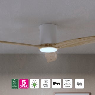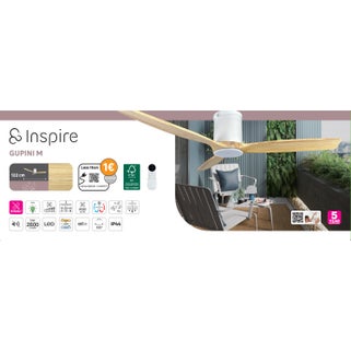 Ανεμιστήρας οροφής INSPIRE GUPINI M, διαμέτρου 122cm σε λευκό/ξύλινο φινίρισμα. Συνδυάζει κομψότητα και λειτουργικότητα, κατάλληλος για μεσαίους χώρους.