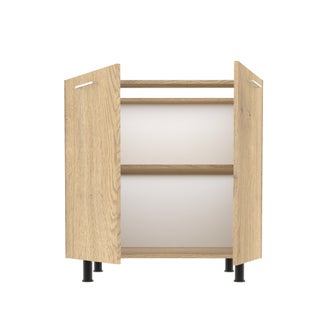 Ντουλάπι βάσης κουζίνας με ποδαράκια στήριξης και κατασκευασμένο από μοριοσανίδα με μελαμίνη σε απόχρωση δρυός. Διαθέτει 2 πόρτες ανοιγόμενες με ένα εσωτερικό πρακτικό ράφι που προσφέρει τον απαραίτητο αποθηκευτικό χώρο για να οργανώσεις όλα τα απαραίτητα αντικείμενά σου. Συνδύασέ το με τα υπόλοιπα έπιπλα της σειράς κουζίνας Easy και δημιούργησε την σύνθεση που ταιριάζει στις ανάγκες της καθημερινότητάς σου. Η σειρά Easy είναι ακριβώς αυτό που χρειάζεσαι αφού είναι προσαρμόσιμη και πλήρως λειτουργική, χωρίς καθυστερήσεις και περιττή πολυπλοκότητα. Δώσε τέλος στην αναμονή και στο άγχος του σχεδιασμού και απόκτησε την κουζίνα σου χωρίς συμβιβασμούς στην ποιότητα.