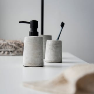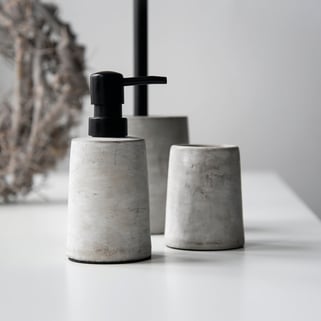Ποτηροθήκη μπάνιου Villena από τσιμέντο σε γκρι απόχρωση. Τοποθετείται ελεύθερα στο έπιπλο μπάνιου, σε όποιο σημείο δίπλα στον νιπτήρα επιθυμείς παρέχοντάς σου άμεση πρόσβαση στην οδοντόβουρτσα και οδοντόκρεμα κατά την ώρα που πλένεις τα δόντια σου. Στην ίδια σειρά μπορείς να βρεις ντισπένσερ και πιγκάλ για να ολοκληρώσεις την λειτουργικότητα και την διακόσμηση του χώρου σου.