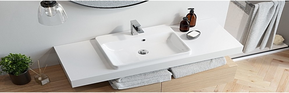 Οι ενθετοι νιπτήρες μπάνιου προσφέρουν μια καθαρή και μοντέρνα εμφάνιση. Τοποθετούνται μέσα στον πάγκο, δημιουργώντας μια ενιαία επιφάνεια που είναι εύκολη στον καθαρισμό και εξαιρετικά λειτουργική. Αυτή η επιλογή είναι ιδανική για όσους θέλουν να διατηρήσουν το μπάνιο τους τακτοποιημένο και κομψό, χωρίς εμφανείς άκρες και αρθρώσεις.