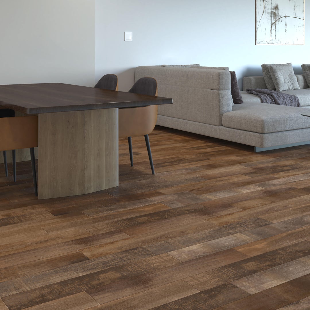 Πλακάκι Imara με πάχος 6.1mm, πορσελανάτο σε καφέ απόχρωση ξύλου, ματ φινίρισμα και κατάλληλο για χρήση σε εσωτερικό δάπεδο ή τοίχο. Κατατάσσεται στην κλίμακα τριβής PEI 4, που σημαίνει αυξημένη αντίσταση στην τριβή κατά την καταπόνηση και αντοχή στον πάγο. Η αντοχή του στην υγρασία το κάνει ιδανικό για τοποθέτηση σε οικιακούς χώρους με υψηλά επίπεδα υγρασίας όπως μπάνιο, κουζίνα, σαλόνι, κρεβατοκάμαρα και χολ. Διαθέτει λείο περίγραμμα πλακιδίου και συντηρείται πολύ εύκολα με ένα απλό ουδέτερο σαπούνι για καθαρισμό. Προσφέρει ένα αριστοκρατικό και διαχρονικό χαρακτήρα στον χώρο, με το καφέ χρώμα σε νερά αντιθέσεων σκούρου και ανοιχτού προσδίδοντας ένα ρεαλιστικό εφέ ξύλου. Στα Leroy Merlin θα βρεις μεγάλη ποικιλία σε πλακάκια δαπέδου και τοίχου για να ανακαλύψεις αυτό που καλύπτει τις ανάγκες σου και ταιριάζει στον χώρο σου.