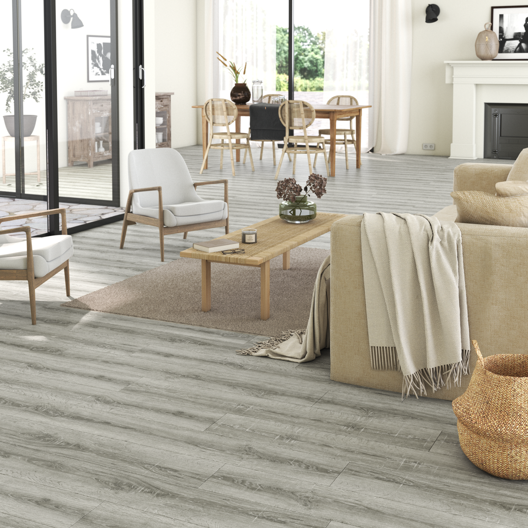 Δάπεδο SPC Granada Intenso παραλληλόγραμμο σε γκρι απόχρωση που προσδίδει ένα μοντέρνο στυλ διευρύνοντας οπτικά τον χώρο χάρη στο γκρι χρώμα του. Διαθέτει ένα ρεαλιστικό εφέ ξύλου, το οποίο αναπαράγει τους κόκκους του ξύλου, καθώς και ένα ελαφρύ ανάγλυφο που ενισχύει την αυθεντική του εμφάνιση. Τοποθετείται πολύ εύκολα και γρήγορα με σύστημα click σε οποιοδήποτε δάπεδο χωρίς να χρειαστεί η αφαίρεση του παλιού. Είναι σκληρό και σχεδιασμένο για μεγάλη ανθεκτικότητα, αντέχοντας τη δοκιμασία του χρόνου σε οικιακούς χώρους. Παρέχει μεγαλύτερο εύρος αντοχής στις θερμοκρασίες και αντίσταση στην υγρασία δημιουργώντας έτσι λιγότερες αποκλίσεις και μεγαλύτερη σταθερότητα στις διαστάσεις. Είναι ελαστικό, ηχοαπορροφητικό και ανθεκτικό στον χρόνο, απαιτεί μικρή συντήρηση και παραμένει αμετάβλητο στις μηχανικές καταπονήσεις και στα χημικά καθαριστικά. Αποτελεί μια οικονομική και ευέλικτη επιλογή δαπέδων για οικιακούς χώρους διαθέτοντας τις απαραίτητες προϋποθέσεις για να χρησιμοποιηθεί ακόμα και σεένα μπάνιο ή μια κουζίνα.