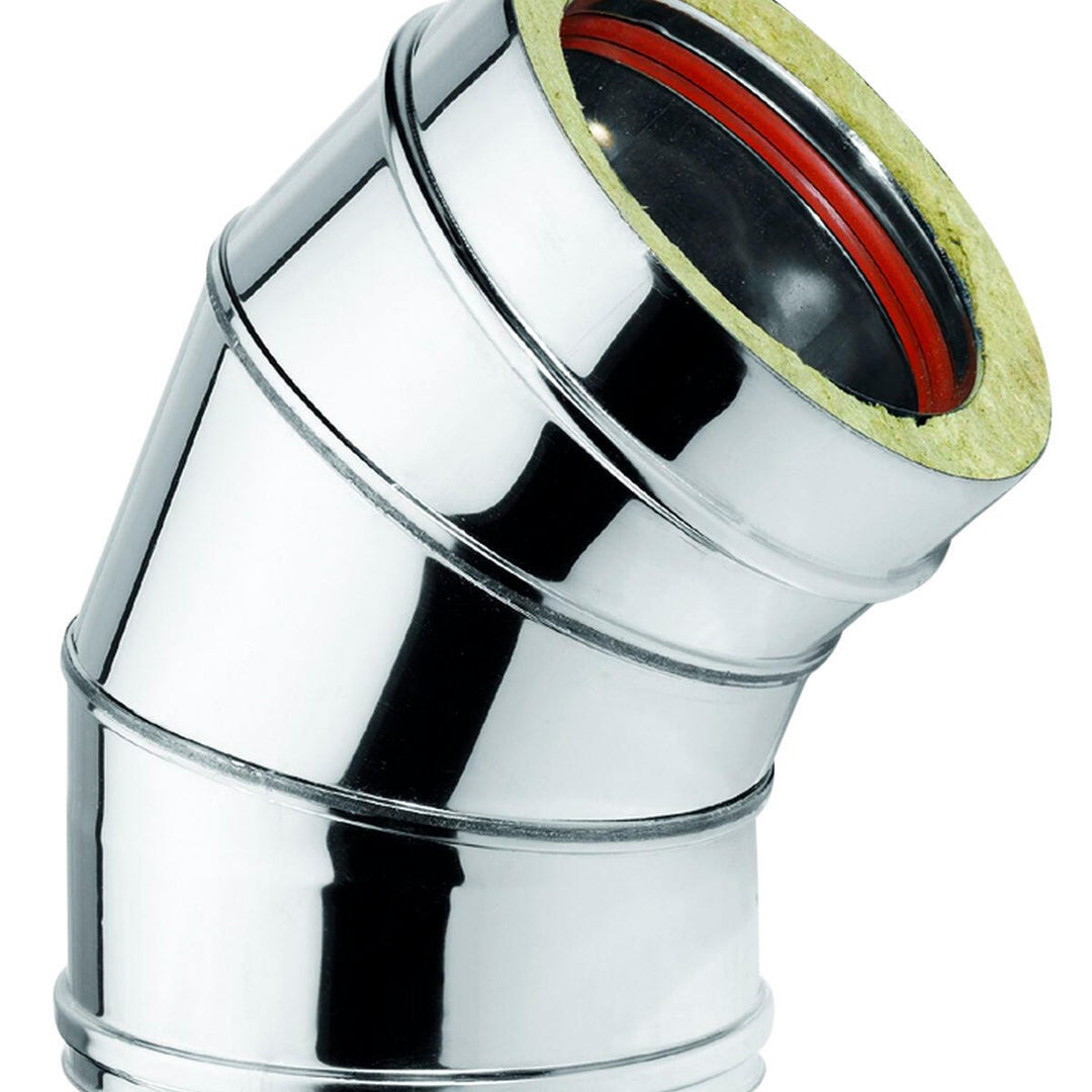 Γωνία 45 ° για χρήση σε τζάκι, λέβητα, ξυλόσομπα σε inox χρώμα