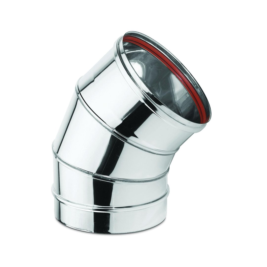 Γωνία 45 ° για χρήση σε τζάκι, λέβητα, ξυλόσομπα σε inox χρώμα