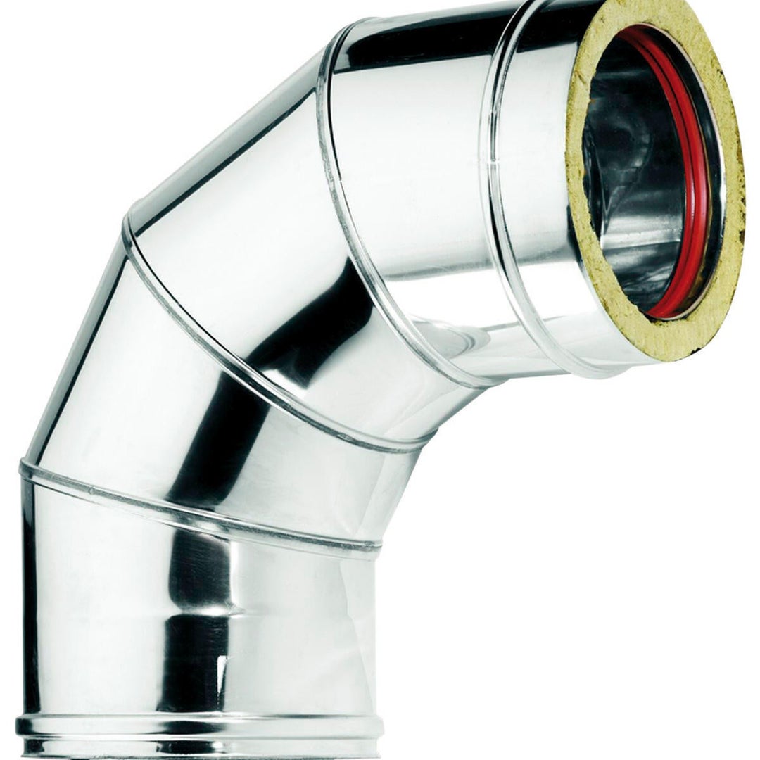 Γωνία 90 ° για χρήση σε τζάκι, λέβητα, ξυλόσομπα σε inox χρώμα