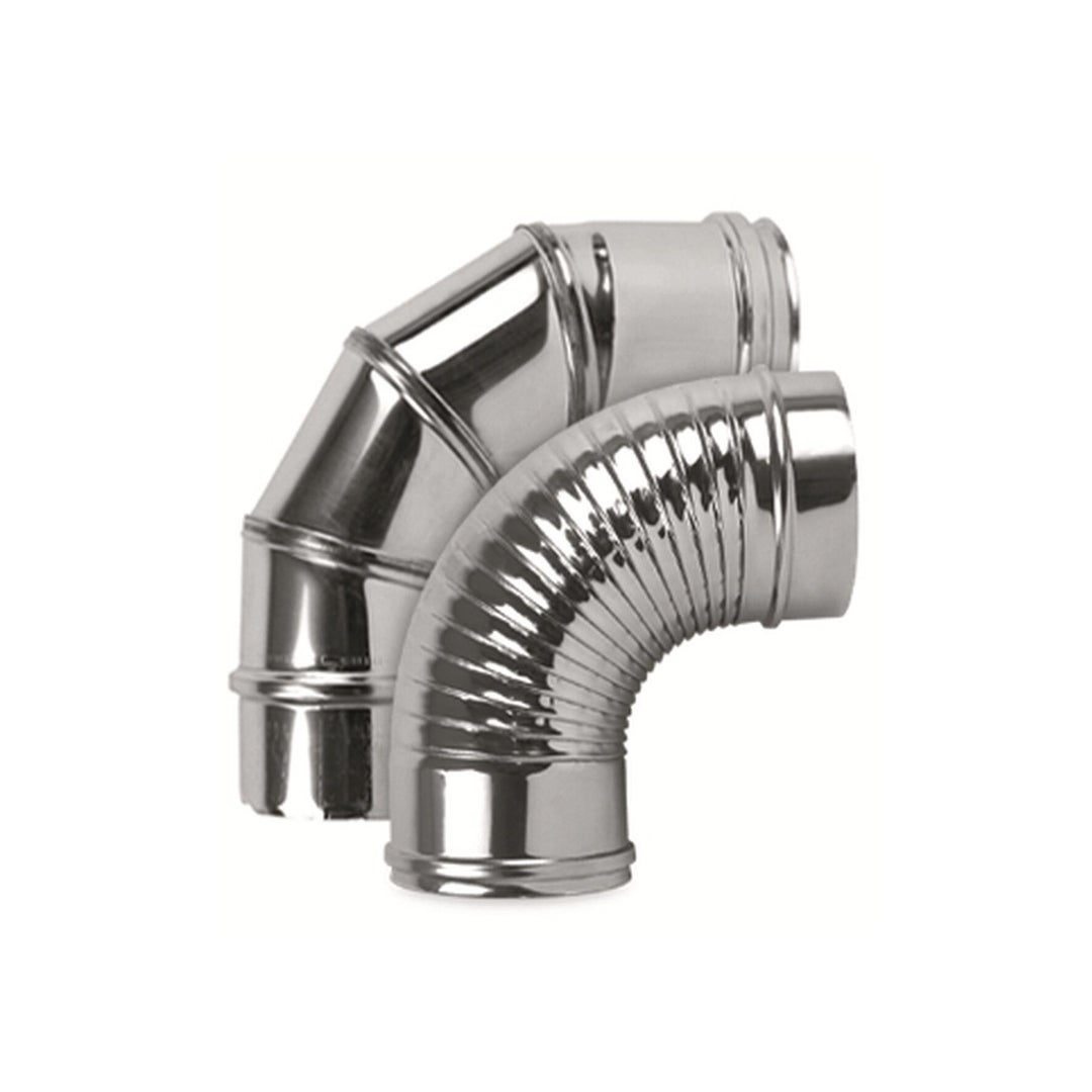 Γωνία 90 ° για χρήση σε τζάκι, λέβητα, ξυλόσομπα σε inox χρώμα