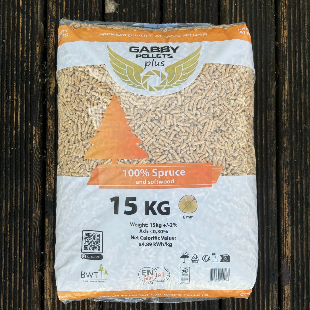 Τα πέλλετ Gabby A1 EN Plus 15kg προσφέρουν υψηλή ενεργειακή απόδοση και καθαρή καύση για σόμπες και λέβητες. Ιδανικά για οικονομική και οικολογική θέρμανση, εξασφαλίζουν σταθερή θερμοκρασία και ασφάλεια στην καύση.